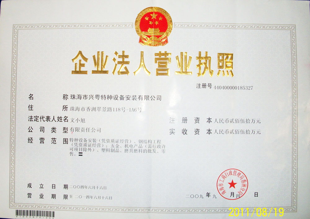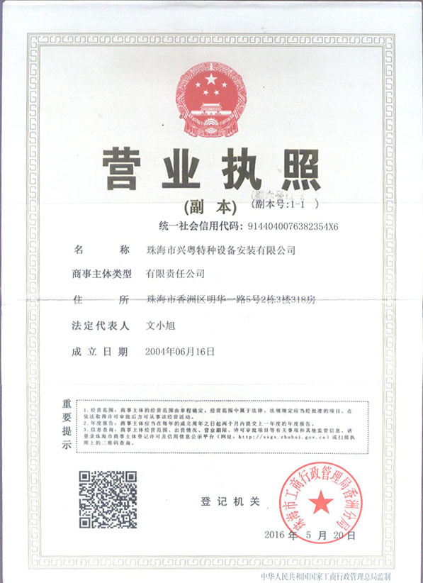 珠海市兴粤特种设备安装公司 珠海市香洲区明华一路5号铭海商务大厦2栋318房 电话:0756-2618356 电子邮箱: cctvcctvcc@163.com 文小旭 13902531169 徐祥生 13709698021 文天择 18666140349